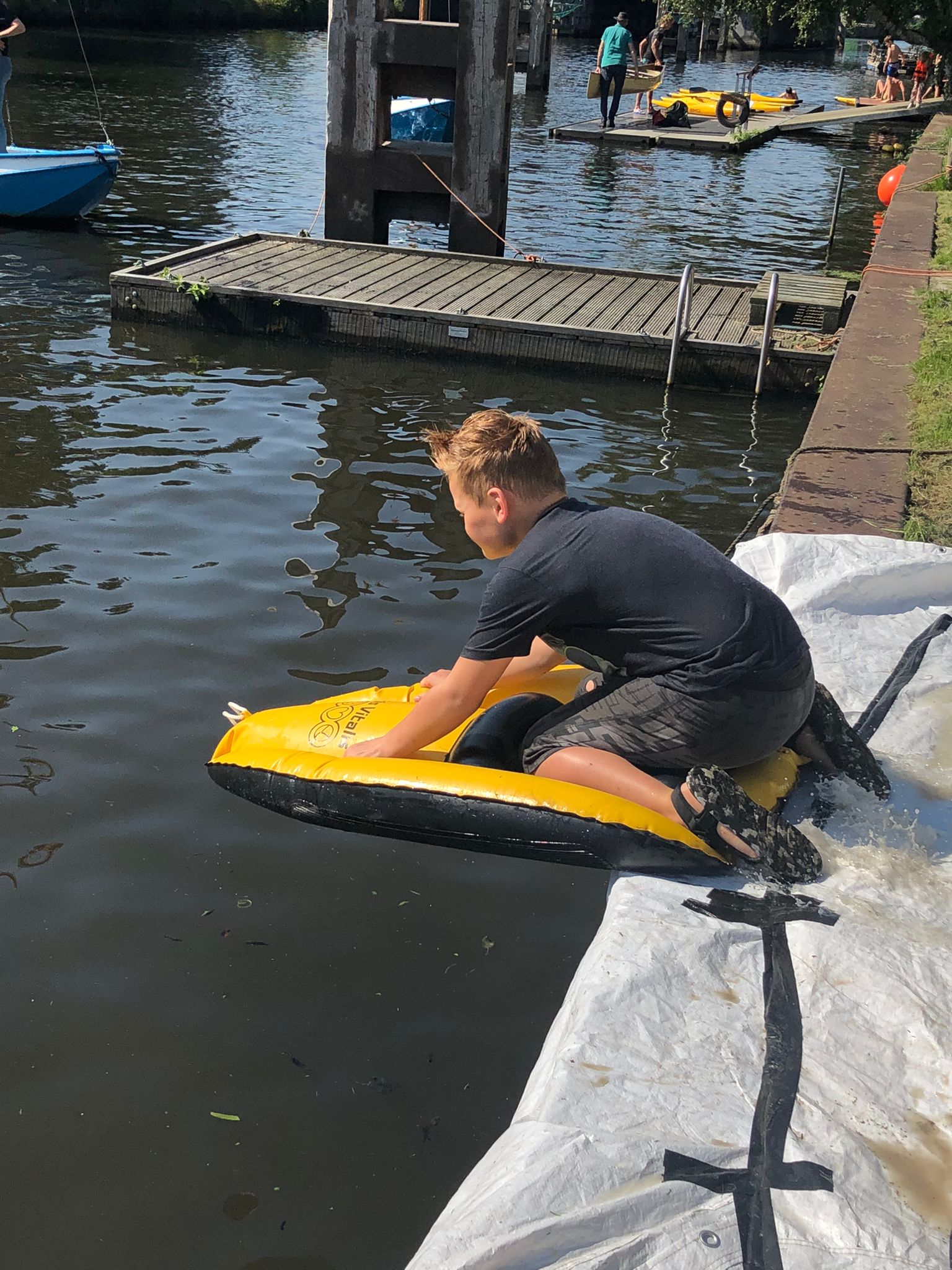 Met overvliegen wordt iedereen nat. Als laatste post ga je van de zeepbaan.
