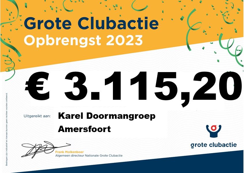 - We een giga opbrengst hebben met de Grote Clubactie: € 3115,20